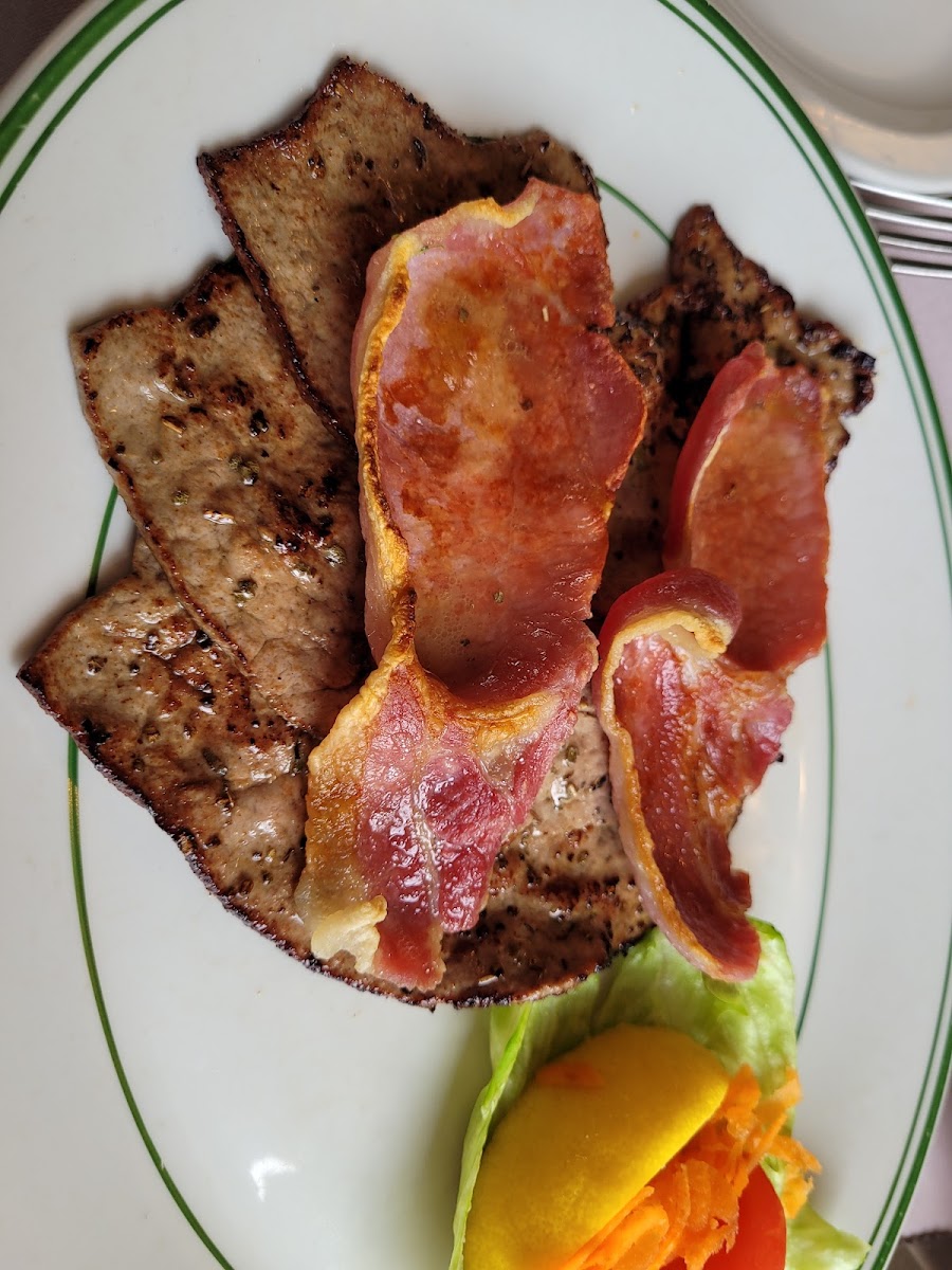Meat lovers will delight in dishes like Lamb, Steak Tornados, and Prawns Wrapped in Salmon, all cooked to perfection. For a unique twist, try the Duck or the Sea Bass, which are served with delectable sides that enhance their rich flavors. If you're in the mood for seafood, the Scallops Wrapped in Bacon is a must-try.
